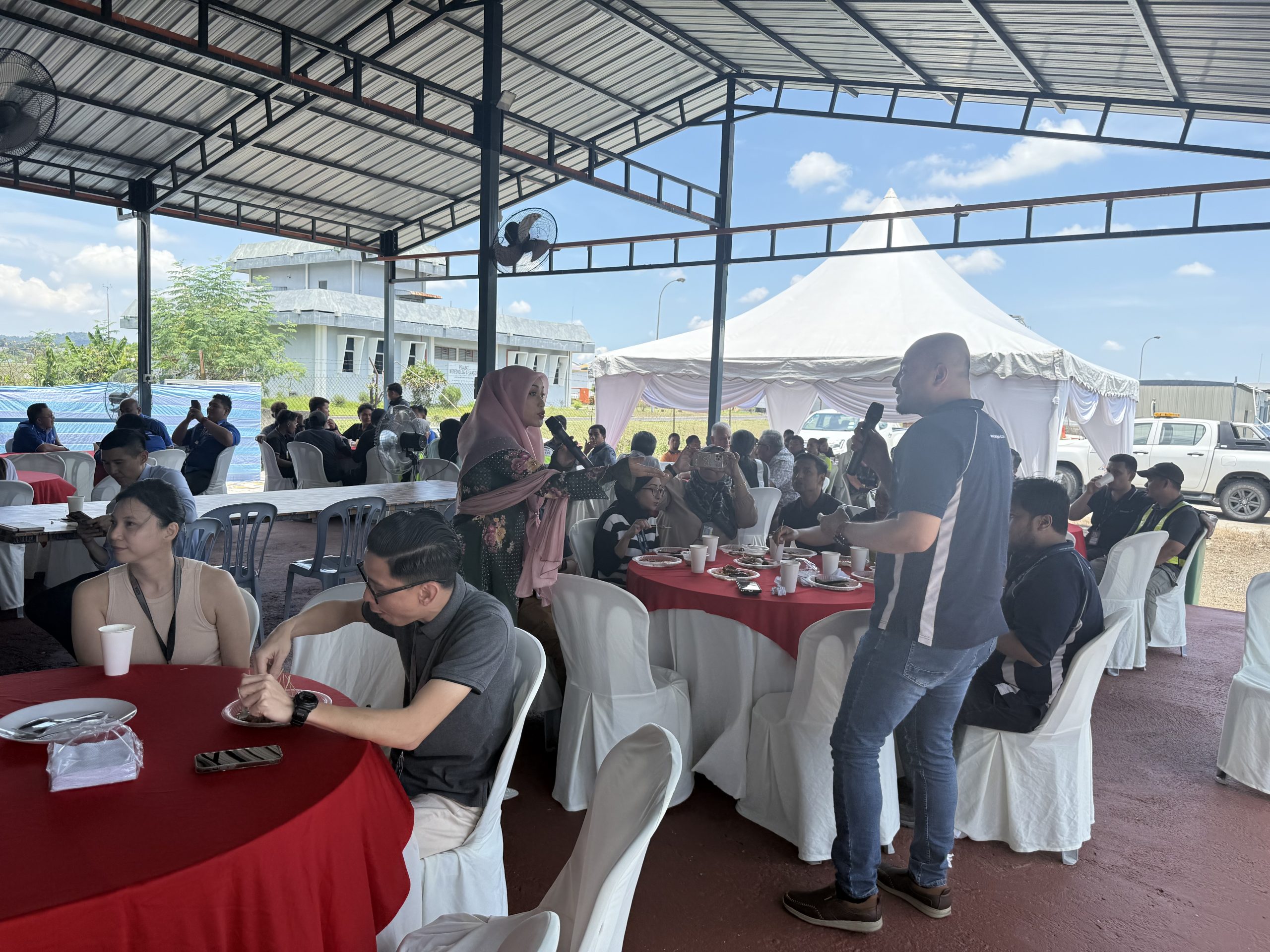 A highlight of the day was the presence of YB Mohamad bin Sabu, specially invited by Mr. Yazid Rahman, who was seen enjoying a relaxed and engaging conversation amidst the celebrations. The event also featured a special performance by local artist Ezlynn, whose live vocals added energy and sparkle, elevating the festive spirit even further.